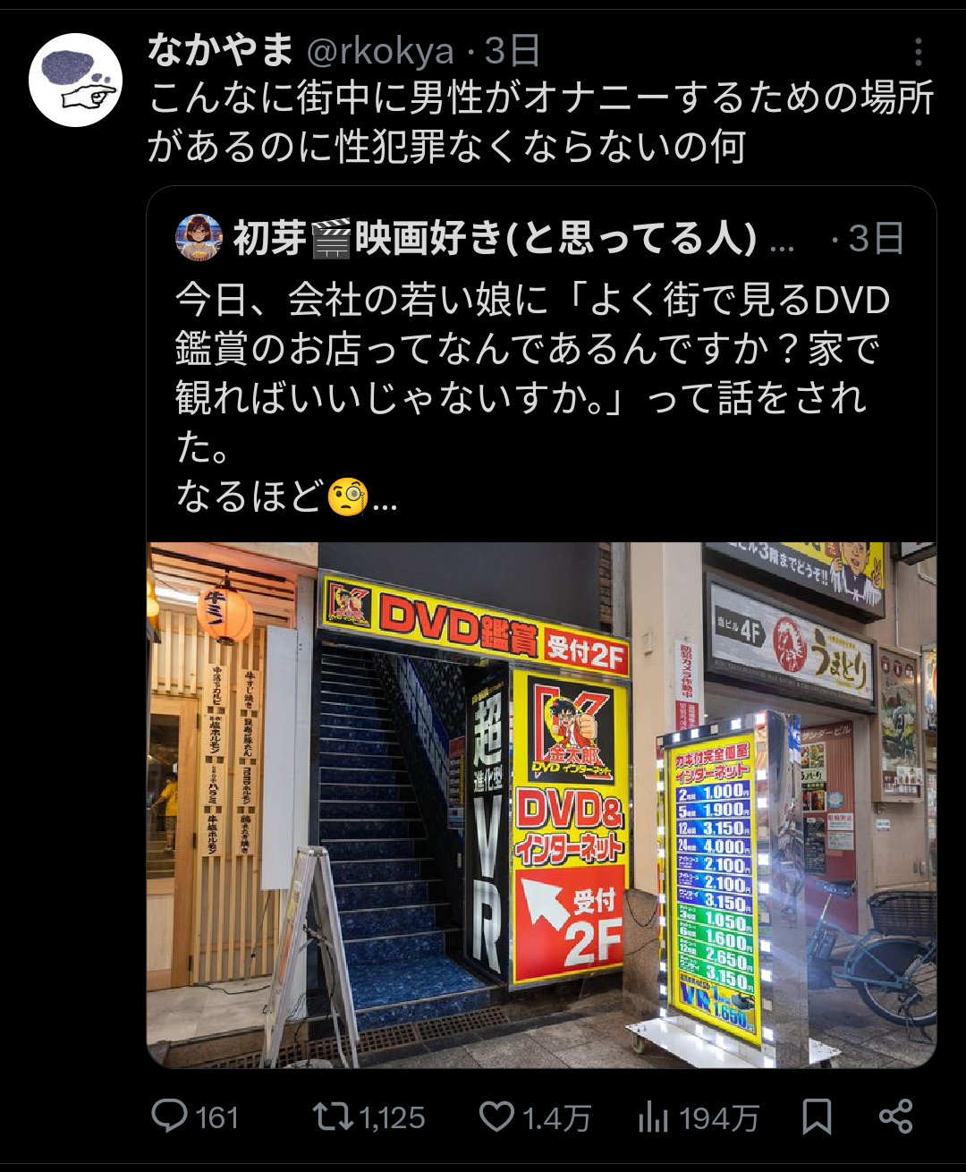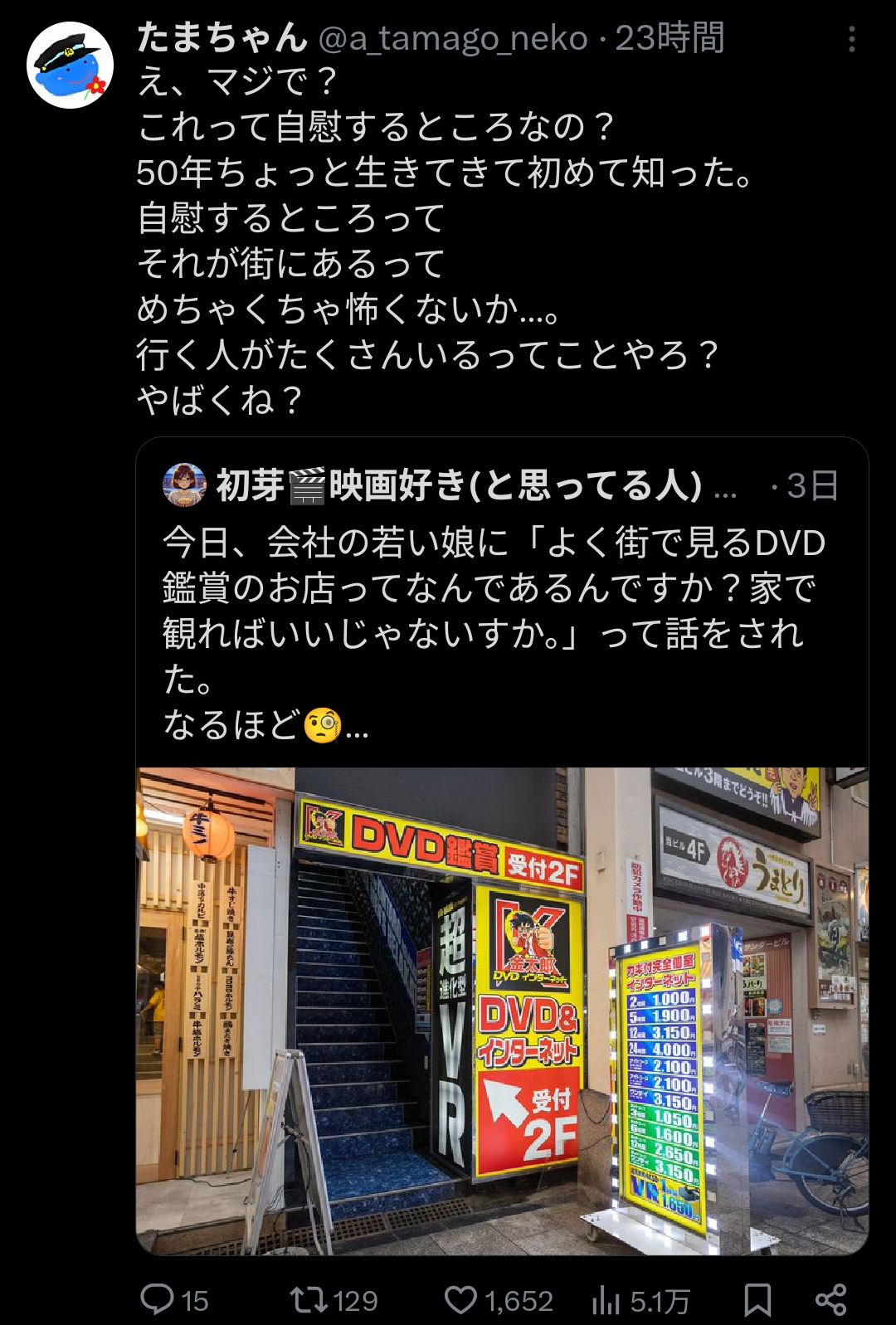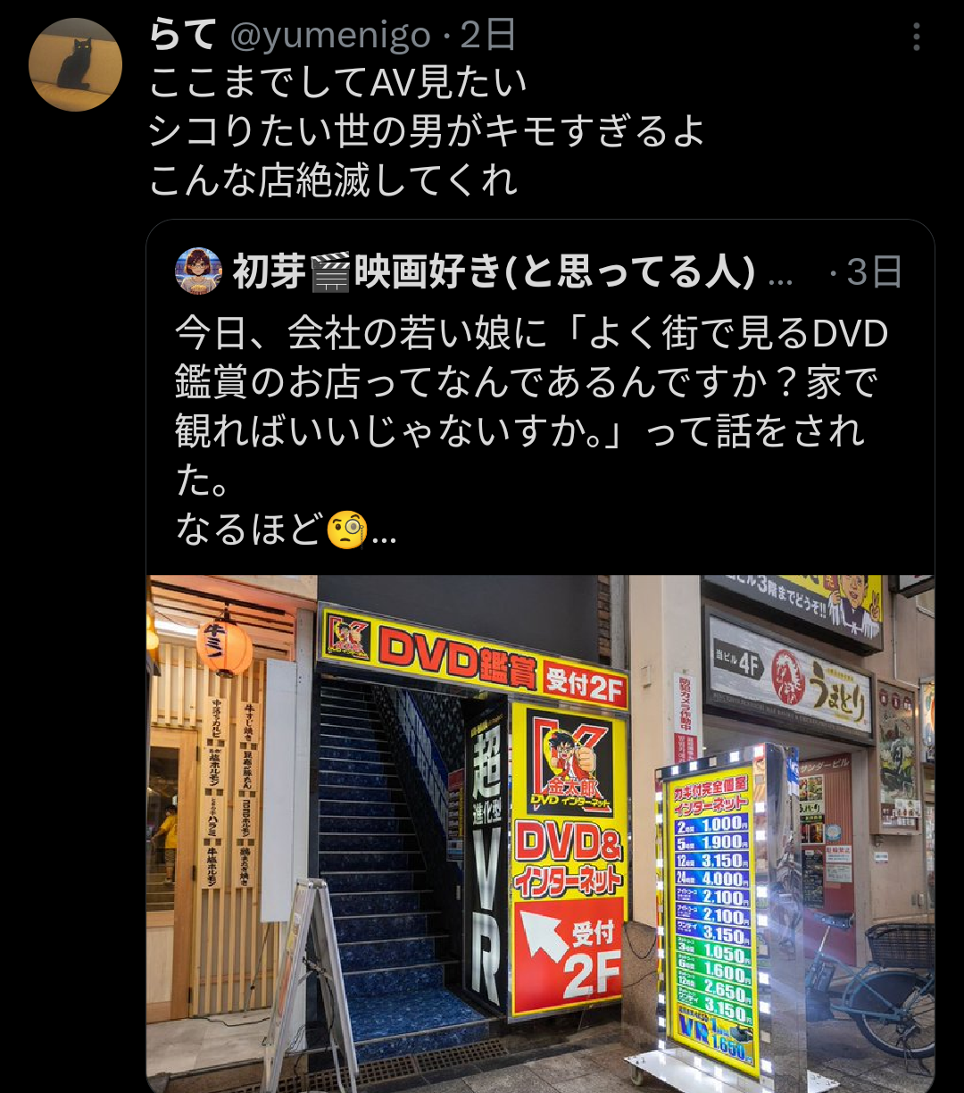 外から見たら個室ビデオ屋に向かう人だったな