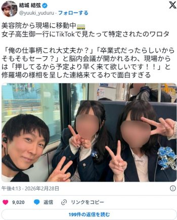 【画像】JK集団「あ、Tiktokで見たAV男優いるじゃん、写真撮ろうよ(パシャ」